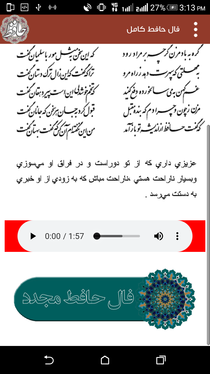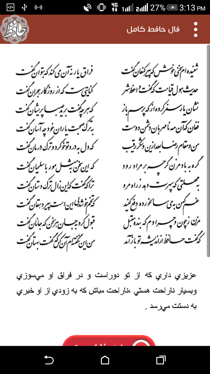 The main Hafiz horoscope with a complete interpretation with the possibility of infinite use, this application has fully benefited from all the lyric poems. Also, Hafiz’s fortune is accompanied by its complete interpretation